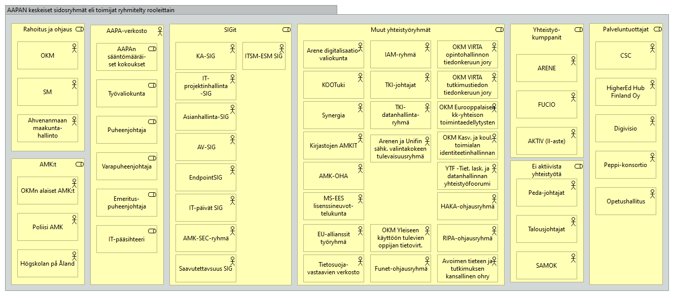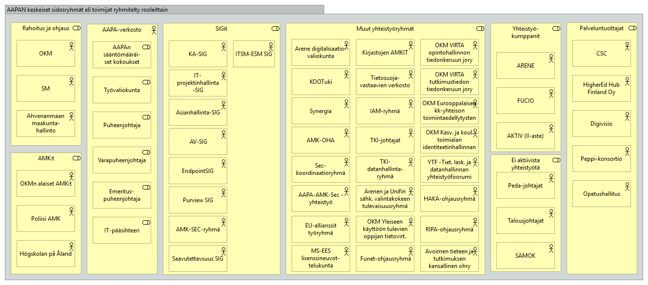 Tällä sivulla AAPAn toimintaa kuvataan kokonaisarkkitehtuurimenetelmällä archimate 3.2. spesifikaatiota hyödyntäen.